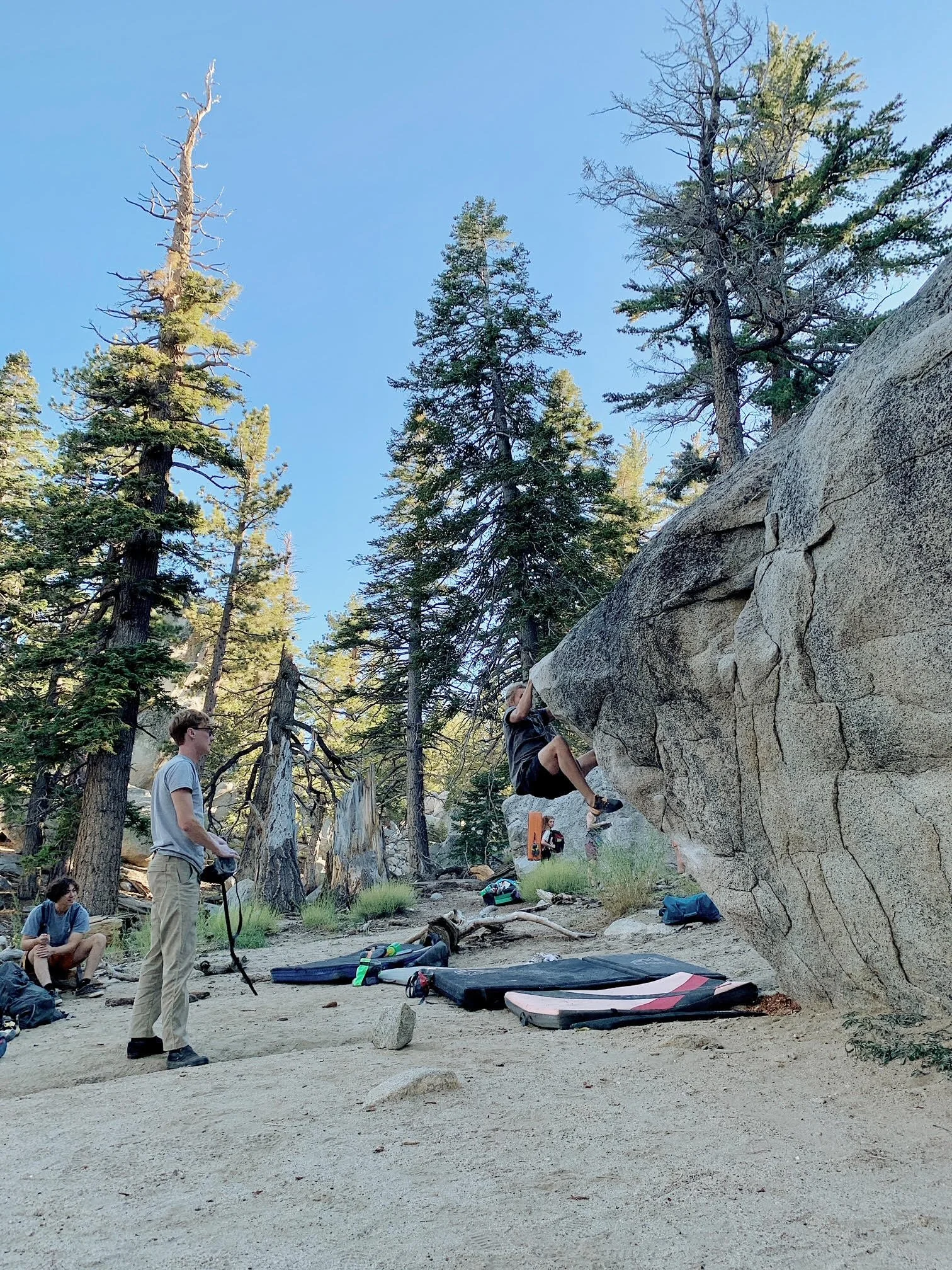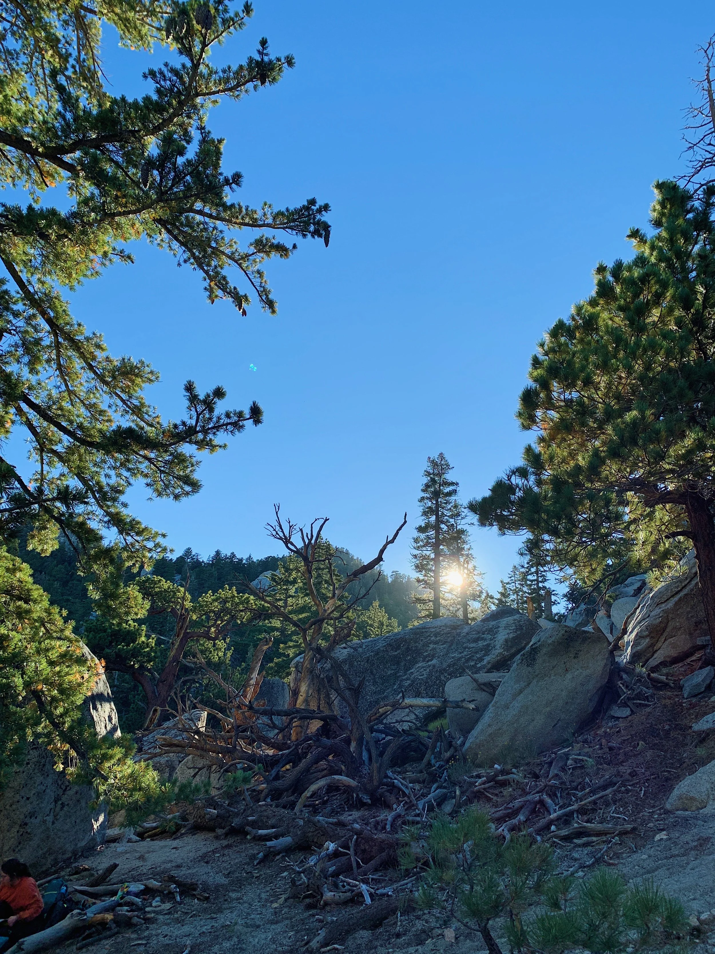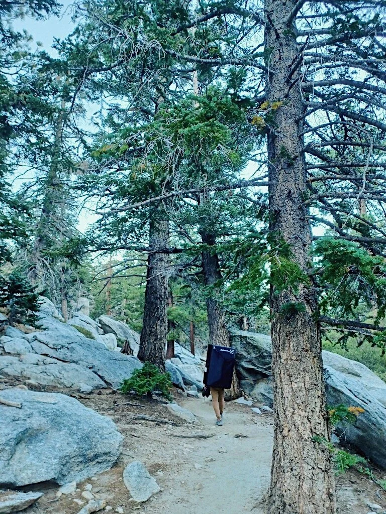 The trip to the top is amazing. San Jacinto is an alpine island in the middle of the desert. At 10,000+ feet, the tram allows you to see the dramatic changes in the mountain’s microclimates as you make the relatively quick ascent. Disi and I got on our tram surrounded by a bunch of what I would call normies. A friendly woman wanted to know all about our crash pads and what we were doing. She explained she did some climbing when she was younger. I can only assume that she wanted us to believe she was part of the stone masters in Yosemite Valley or something. And to be honest, I want to believe that she was. As we got to the top, the air was refreshingly cooler than the desert below. We refilled our water bottles, walking past the ranger station. The rangers saw our crash pads and informed us that to go bouldering, climbers have to fill out a free permit form. You drop the pink copy off and return the original when you leave. That way, if you go missing and don’t return your top sheet, they’ll know to send out a search party.